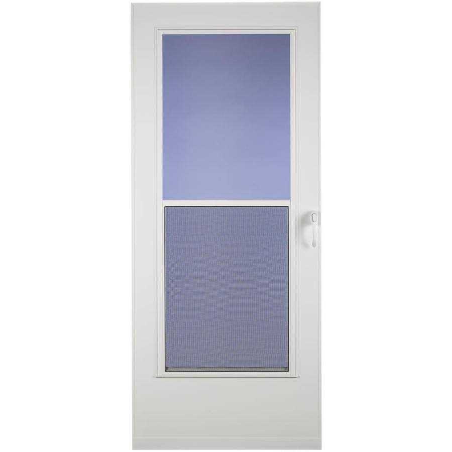 Mobile home storm door self-storing 1″ thick wood core doors that provide all weather protection at a great value. Maintenance-free DuraTech surface needs no upkeep. Window and screen system provide ventilation control. Heavy-duty weatherstripping. Adjustable speed closer. Reversa Hinge for right or left mounts. Sleek white push-button handles on white models. 32″ x 75″.