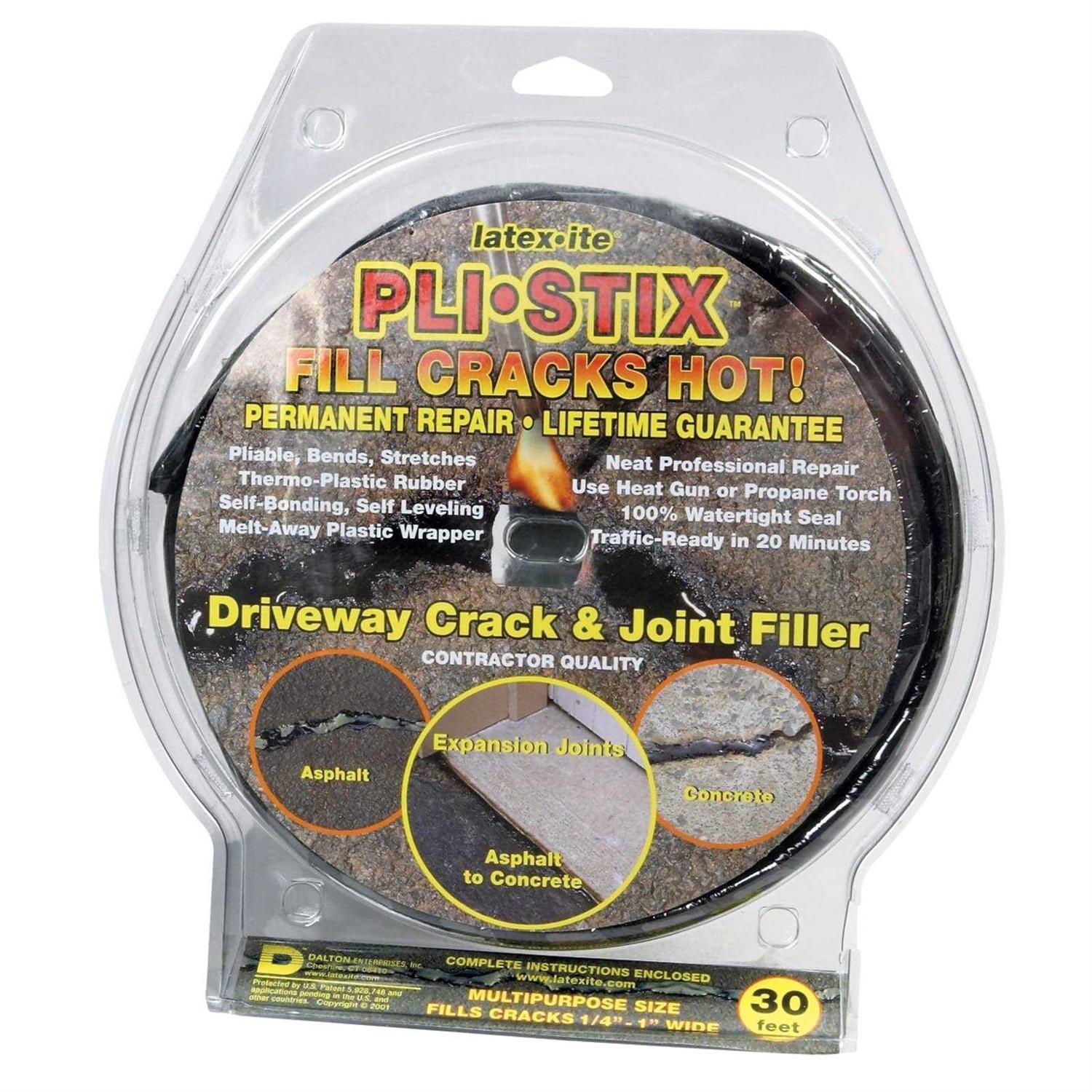 Latexite brings to you the Pli-stix medium 1/2 inch black permanent asphalt crack filler, the only permanent solution to cracks available on the marketplace. This black product is the same product seen on highways and roads, but the only difference is that you can apply this joint filler and don t need a 200-gallon melter to do it. The medium Pli-stix is a joint and crack filler for cracks of 1/2 to 1 inch in diameter. The coverage area of the Latexite crack filler is 30 linear feet. There is zero VOC. The Pli-stix crack filler is a permanent repair and comes with a lifetime guarantee. Just apply the joint and crack filler in the crack or joint and heat it with a heat gun or propane torch. It is 100% watertight seal and makes your drive traffic-ready in 20 minutes. This crack joint filler can be used on asphalt, expansion joints of asphalt to concrete, and the concrete itself.