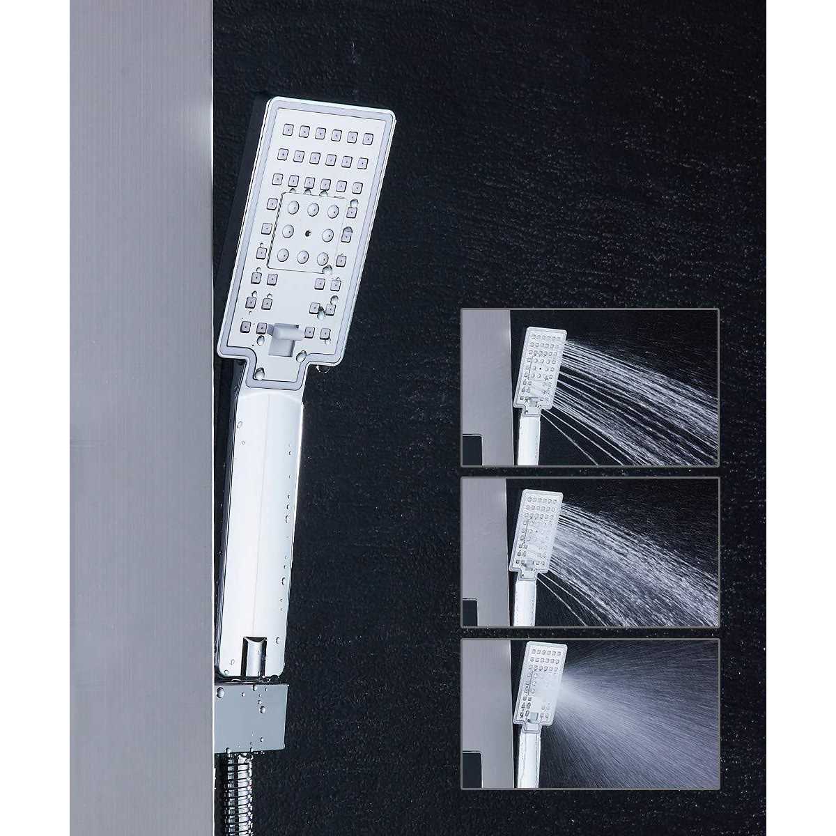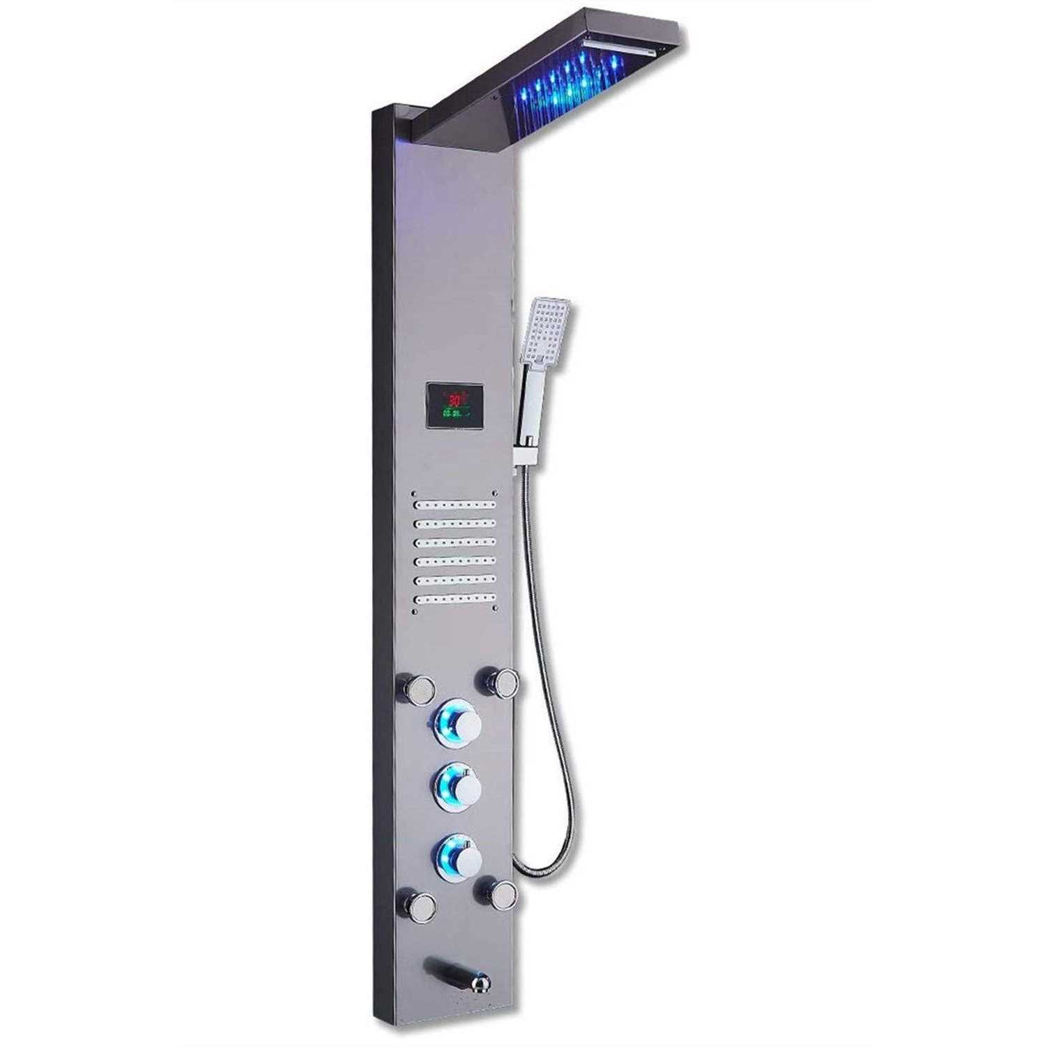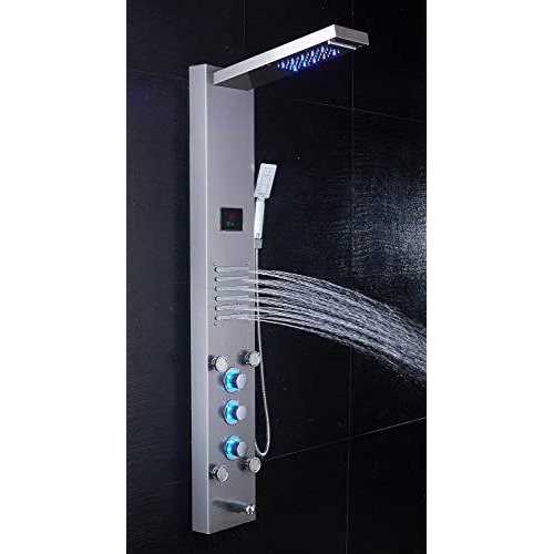ELLO&ALLO The panel’s body is made from stainless steel. Chrome and brushed nickel design. Premium multi-function shower massage panel with led shower head for home and commercial use. It has adjustable body massage jets, a hand shower, rain shower head for an all-encompassing experience. The system has hot and cold integrated mixing valve controls and a diverter to redirect water from one function to another. The shower system is lightweight, durable, and corrosion-resistant. Its strong construction, paired with the fact that it is pre-plumbed for easy installation, makes it easy to love for years to come.