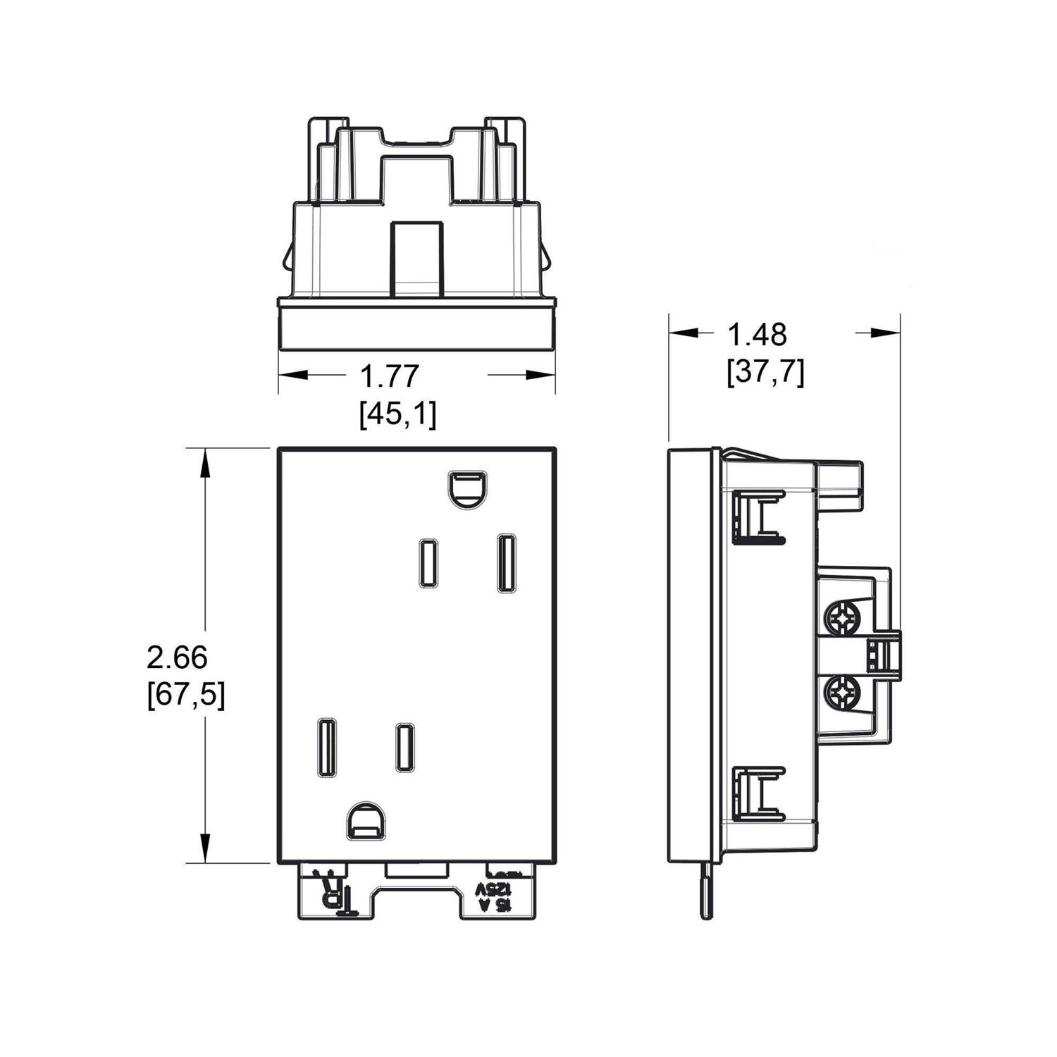 Tamper Resistant 15 Amp Plus Size Outlet by Legrand Adorne in WhiteThe Tamper Resistant 15 Amp Plus Size Outlet extends the unique look to every inch of your home. Tamper Resistant shutter system helps prevent improper insertion of foreign objects. SafeLock Protection will cut off power to outlet if components are damaged. Configuration supports two plugs up to 15 Amps. Available in a White, Graphite or Magnesium finish. 1.77 inch width x 1.77 inch height. UL Listed. Requires a plus size Adorne wall plate, sold separately.