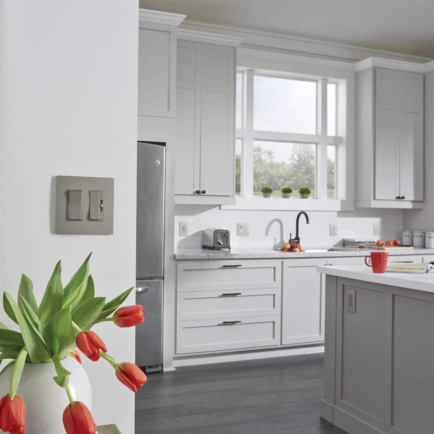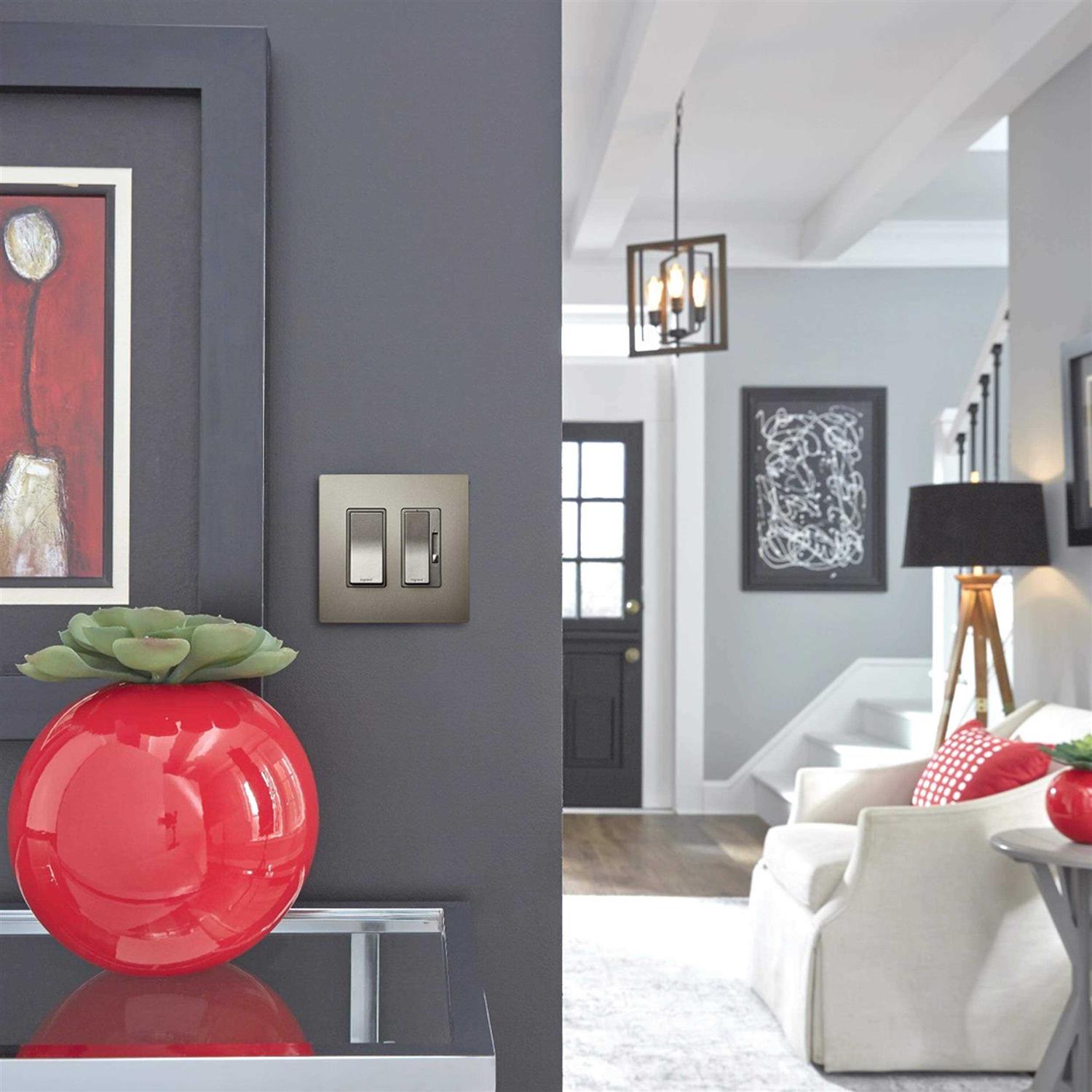- METALLIC PAINT FINISH: Add a designer style to match your fixtures, hardwoods, faucets, and more with the radiant dimmer switch