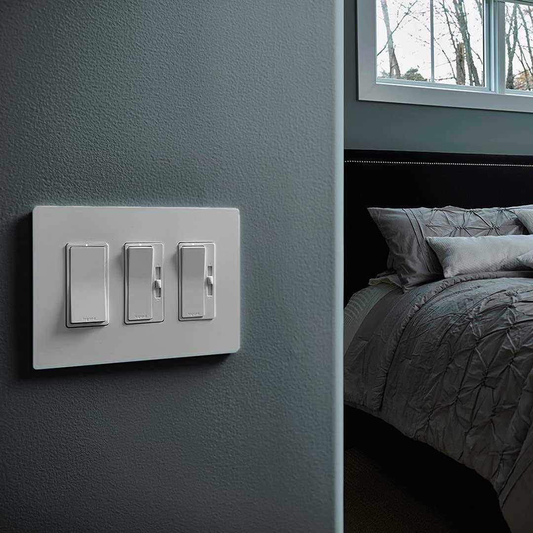 Combines ON/OFF paddle switch with separate slider for dimming control. Constant memory returns lights to previous level after a power failure. Sleek, ergonomic style matches other devices in the radiant Collection of home electrical devices by Legrand. Pair with a radiant screwless wall plate (sold separately) to complete the look. Available in multiple colour options including metallic finishes. Compatible with Incandescent & Halogen rated up to 700W, dimmable LED/CFL rated up to 450W. No derating in multi-gang applications. This dimmer also features a white LED locator light glows when dimmer is OFF for easy location in the dark. Easy installation in just 15 minutes, all you need is a screwdriver. Ideal for large areas and open floor plans. Use on its own to control a light from one location (single-pole operation) or pair with a second switch to control a single light source from two locations (three-way operation).