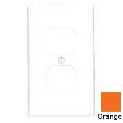 Leviton 1-Gang 1-Duplex Receptacle wallplate in orange color features a sturdy thermoplastic nylon construction for optimum resistance against impact, abrasion and fading. Standard-size wallplate measures 2.750 Inch x 4.500 Inch x 0.215 Inch. It comes with 1.343 Inch x 1.125 Inch cutout. Wallplate is resistant to high mechanical stress. Wallplate includes matching screws that are made of durable metal for easy mounting and suiting the decor. Wallplate has a smooth finish that can be easily cleaned. It is ideal for use in hospitals, institutions, industries or commercial purposes. Wallplate is non-combustible for added safety. It goes well with other traditional Leviton devices. Wallplate is UL listed/CSA certified.