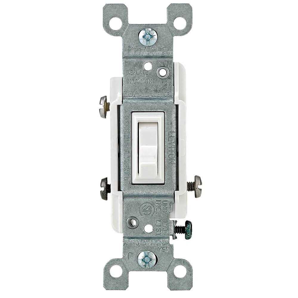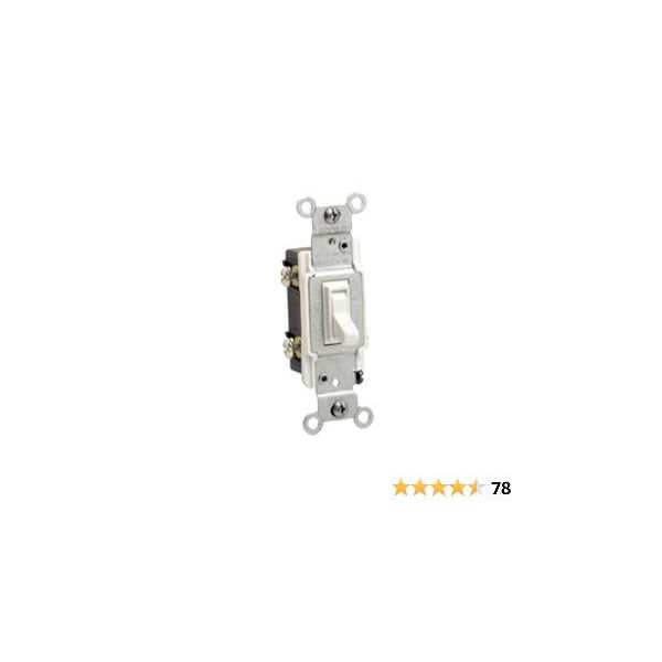 Leviton 3-Way AC Quiet switch in white color features a steel strap for convenient mounting and a durable thermoplastic body/actuator. It has a voltage rating of 120 VAC, current rating of 15 Amps and power rating of 1/2 hp. It has side wiring/large head/hardened triple-drive screws that enables an easy installation. It has an impact resistant toggle/frame construction and is ideal for residential applications. It measures 1.310 Inch x 4.200 Inch and operates between -40 to 65 deg C temperature.
