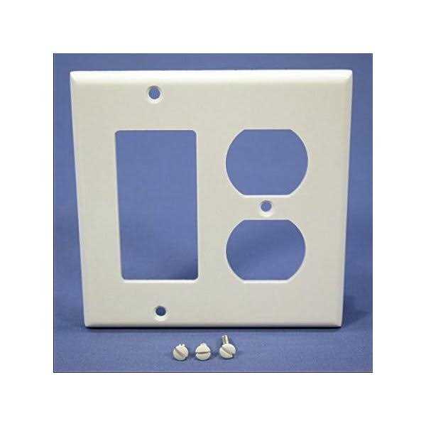 Leviton 80455-W 2-Gang 1-Duplex 1-Decora/GFCI Device Combination Wallplate, Standard Size, Thermoset, Device Mount, WhiteLeviton Combination Wallplates come in a variety of configurations and gangs, and are available in a broad selection of materials including, aluminum, brass, stainless steel and plastic, and in an assortment of colors. If you have a unique application, Leviton can also customize a wallplate for a specific job. Decora is a registered trademark of Leviton Mfg. Co., Inc.