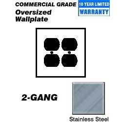 Leviton 2-Gang 2-Duplex Receptacle wallplate in silver color features a 430 stainless steel construction to offer resistance against corrosion. Oversized wallplate measures 5.310 Inch x 5.250 Inch x 0.187 Inch. Wallplate is used to conceal greater wall irregularities. It is used for residential and commercial purposes. Wallplate is UL listed/CSA certified.