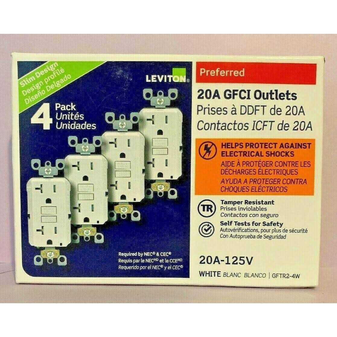 Leviton 20 Amp 125-Volt Duplex Smartest Self-Test SmartlockPro Tamper Resistant GFCI Outlet, White (4-Pack)