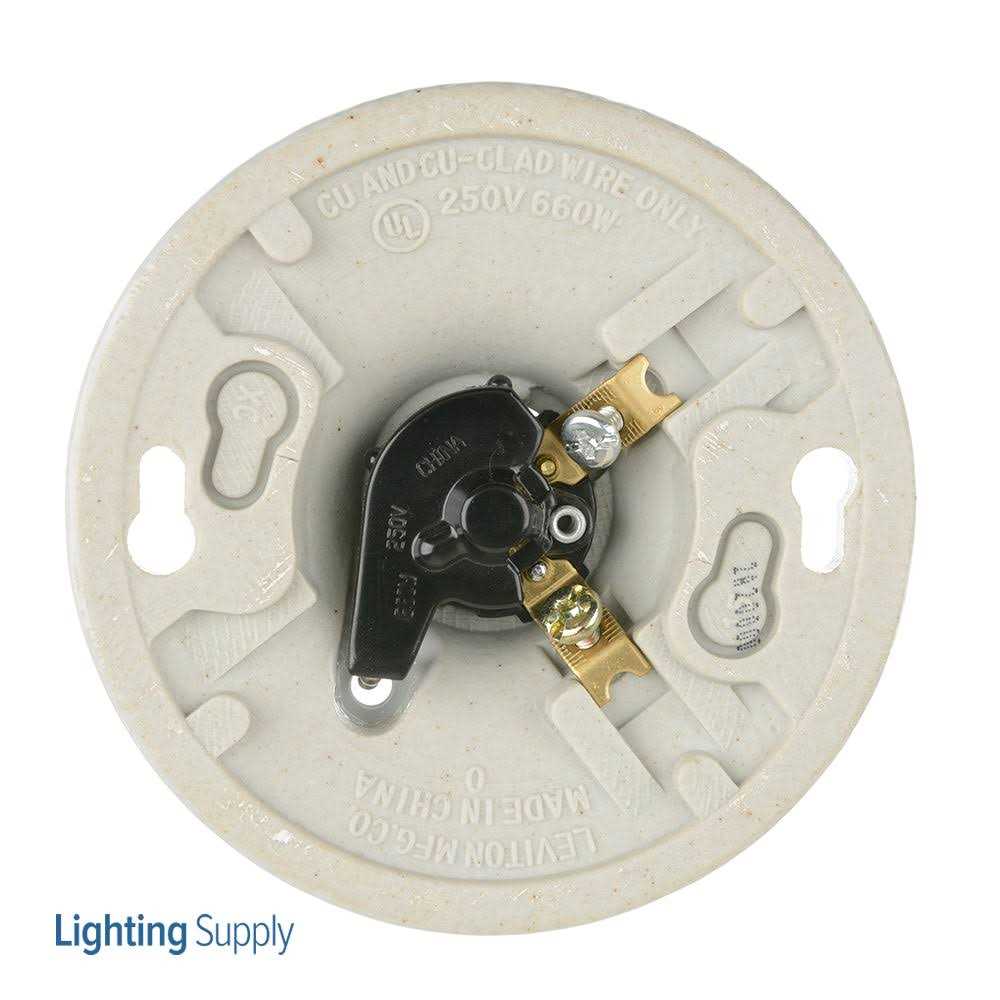 Lamp Socket Base: Medium. Construction: One-Piece. Operator Type: Pull Chain. Circuit: Single Circuit. Sequence: ON-OFF. Wiring Access: Top Wired Max. Lamp Wattage: 660W Voltage: 250 Volt. Termination: 2 Terminal Screws. Mounting Type: Twist-lock. Fits outlet box size: 3-1/4 or 4 inch. Standards and Certifications: UL/CSA.