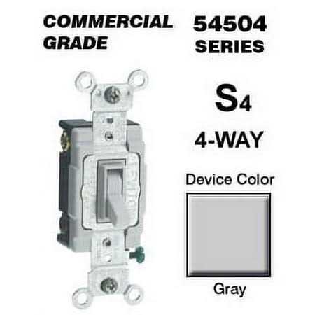 Leviton 54504-2GY 15 Amp 4-Way Toggle Switch Commercial – Gray
