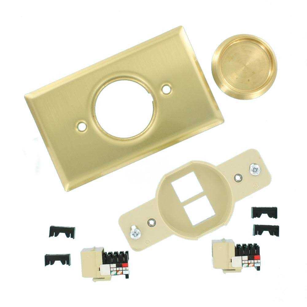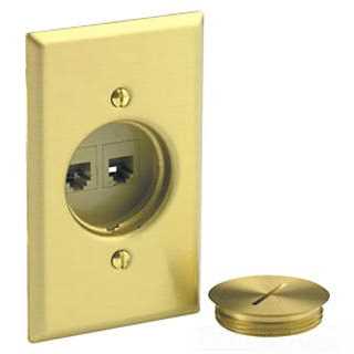 Rugged and fully field-configurable, this device provides point-of-use connectivity for a broad range of applications where convenience or building requirements dictate the use of a floor-mounted communications outlet. Each floor plate is made of .06 inch thick solid brass to hold up under heavy furniture or foot traffic. When not in use, a flushfitting brass screw cap keeps internal components free from dirt and dust. The two individual ports are configured easily with any combination of QuickPort Snap-in Modules. QuickPort floor jacks will fit standard metal boxes 3 inch x 2 inch, 3 inch x 2 1/8 inch and larger.