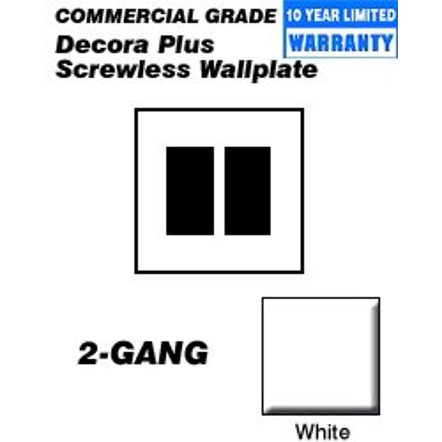 Leviton 80309-SW Decora Plus 2-Gang Screwless Wallplate, White