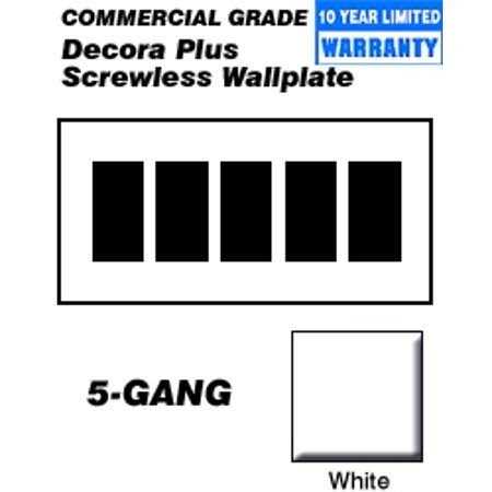 Leviton 80321-SW Decora Plus 5-Gang Screwless Wallplate