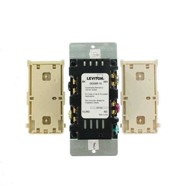 Coordinating switch remote for multi-location switching For use with Decora Digital (Bluetooth) or Decora Smart (Z-Wave, Wi-Fi, or HomeKit) switches (Refer to compatibility chart below) Use in 3-way or up to 9 additional locations Alternative wiring method available for applications where a neutral wire is not present (see product instruction sheet) No LED locator light White face assembled on device, ivory and light Almond face plates included Decora Digital/Decora Smart Coordinating Switch Remote is designed to be used for multi-location control of Levitons line of Decora Digital and Decora Smart Switches allowing the lighting to be controlled from the main switch or the remote location. Its stylish look is compatible with Levitons other Decora devices and wallplates (sold separately). White face assembled on device with ivory and light almond face plates included. Change the color of the switch at any time by ordering a new face plate color change kit (DDKIT-S). Face plate colors include white, ivory, light almond, gray, black, brown and red.