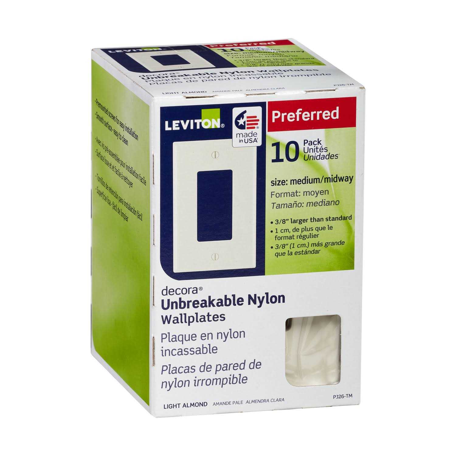 Leviton Decora 1-Gang Midway Nylon Wall Plate, Light Almond (10-Pack)