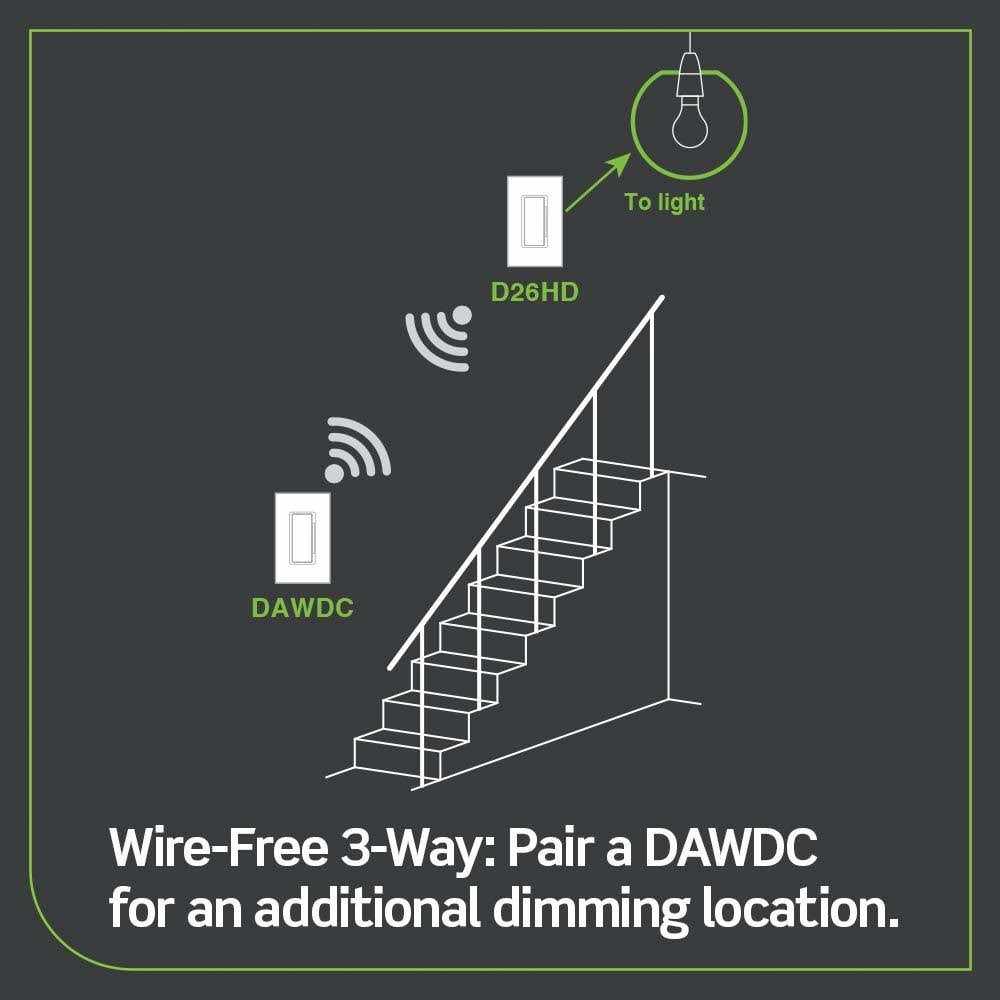 - 3-WAY: Pair with wired DD00R Dimmer Companions or DD0SR Switch Companions for additional control locations.