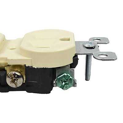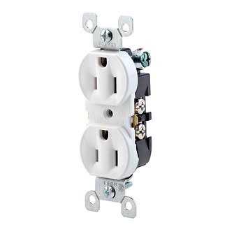 Leviton 2-Pole Duplex receptacle in ivory color comes with ears and has thermoplastic face/body to offer low moisture absorption. Straight blade receptacle has durable steel strap to offer high tensile strength. It has three-wire circuitry. Receptacle has Quickwire push-in and side wire termination for easy installation. Receptacle accommodates wires of size 14 AWG. It has voltage rating of 125 Volts and current rating 15 Amps. Residential grade receptacle has double-wipe power contacts to offer enhanced conductivity and plug retention. Receptacle operates at a temperature of -40 to 60 deg C. The 1-Phase receptacle measures 1.330 Inch x 0.900 Inch x 4.200 Inch. Receptacle is NEMA 5-15R rated and has flammability rating of UL 94V-2 to withstand harsh environmental conditions. It is suitable for commercial applications. Receptacle is UL listed and NOM/CSA certified.