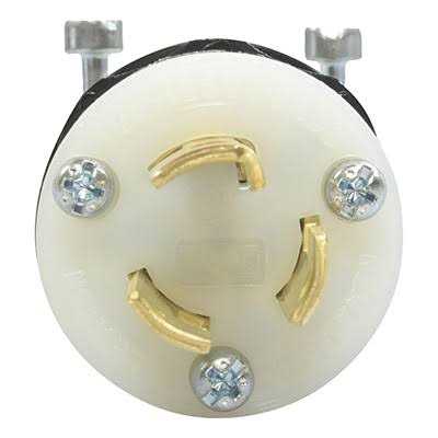 It has cord range of 0.24 – 0.7-Inch. Grounding plug in black/white color, has impact/chemical/abrasion-resistant nylon body and thermoplastic back cover. It has nylon wiring module, cord clamp and clamp insert. It withstands current rating of 15-Amps and voltage rating of 125-Volts. Plug withstands 2000-Volts dielectric strength per UL498. This 1.98-Inch plug has 1.39-Inch top Dia and 1.53-Inch bottom Dia. It has zinc-plated steel assembly screws for easy installation. It withstands temperature range of -40 to 60 deg C. It has HB flammability rating per UL94 to withstand harsh environmental conditions. Locking plug is UL listed, CSA/NOM certified and meets ANSI standards.