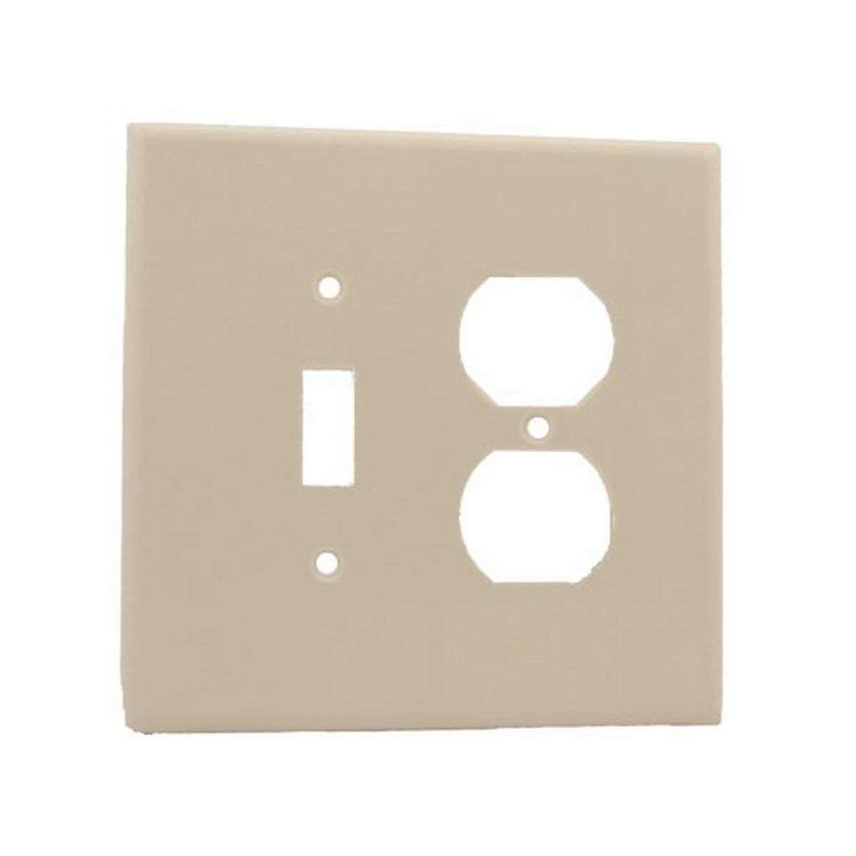 Leviton 2-Gang Oversized combination wallplate in white color measures 5.310 Inch x 5.250 Inch x 0.250 Inch and features high quality thermoset plastic construction to avoid fading, discoloration or scratches. The 1-Toggle switch wallplate with smooth finish is designed for high dielectric strength/arc resistance. It includes mounting screws for easy installation and features elegantly designed rounded edges to resist dust accumulation. The 1-duplex receptacle wallplate that has a cutout of size 0.406 Inch x 0.942 Inch is device mountable and can be used for residential or commercial applications. Wallplate is UL listed and CSA certified.