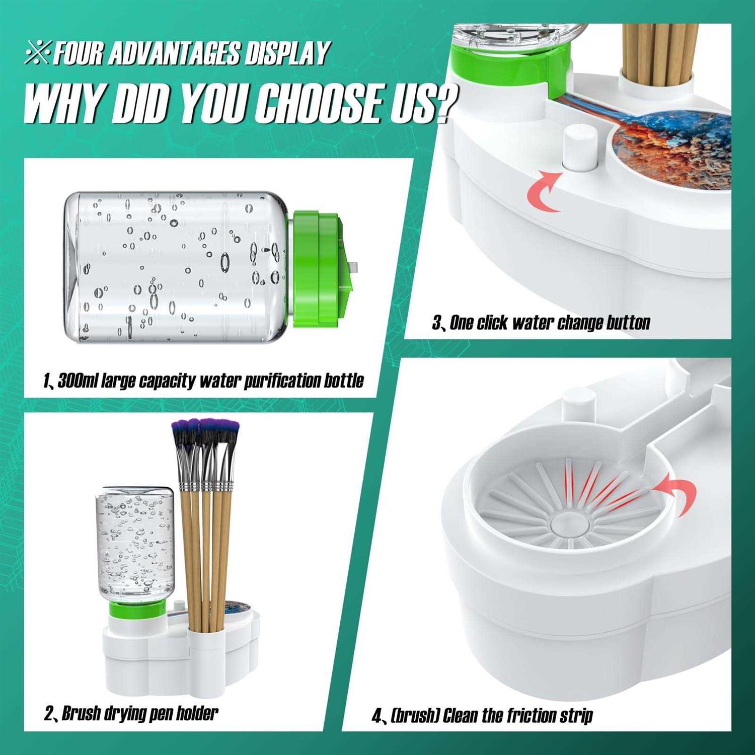 New Upgrade Brush Cleaner: New Upgraded waterproof brush cleaner greatly reduces the possibility of water splashing out during use, and is a brand-new perfect painting tool! Effortless Cleaning: Our advanced painting supplies for painting features a brand-new water circulation design, allowing you to recycle dirty water and let out clean water with just a press of a button. It eliminates the tedious steps of cleaning brushes, saving both water and time. Lightweight and portable: This cleaner weighs 0.4 pounds and is made of sturdy lightweight plastic, sturdy and portable, you can give it to your kids without getting your desk and hands dirty! Eco-Friendly& Save Water: This paint brush cleaner tool can make cleaning your brushes fast and efficient, encouraging us to save water instead of using a large bucket of water to clean them all at once. This not only saves water but also helps to reduce the amount of chemicals that go down the drain. Perfect Gift for Artists: It’s a perfect gift for painters and kids to use in classrooms, art studios, homes, and outdoors. It’s excellent for watercolor, tempera, gouache, and acrylic painting, as well as for cleaning brushes. New Upgrade Brush Rinser, Paint Brush Cleaner Art Supplies, Water Cycle Rinser Tools for Acrylic, Watercolour, and Water-Based Mediums