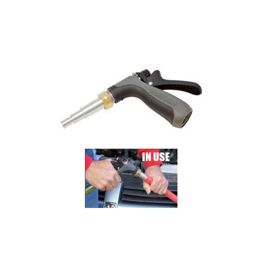 Heater core backflush tool features and benefits: adjustable pressure industrial spray gun and stepped tip design for easy heater core flushingthe tip fits 1/2in, 5/8in and 3/4in hose fittingswater pressure can be easily controlled with one hand by squeezing the handle of the heavy-duty spray gunthe insulated handle protects your hand when using hot water to flush the cooling systemthe spray gun attaches to a standard garden hosethe tip fits 1/2in, 5/8in and 3/4in hose fittings. Water pressure can be easily controlled with one hand by squeezing the handle of the heavy-duty spray gun. The insulated handle protects your hand when using hot water to flush the cooling system. The spray gun attaches to a standard garden hose.