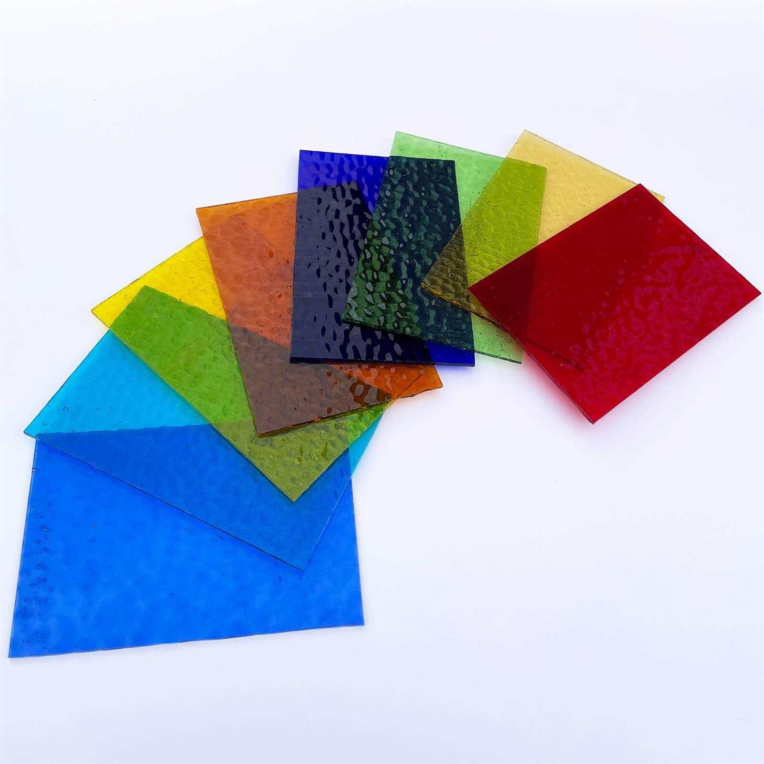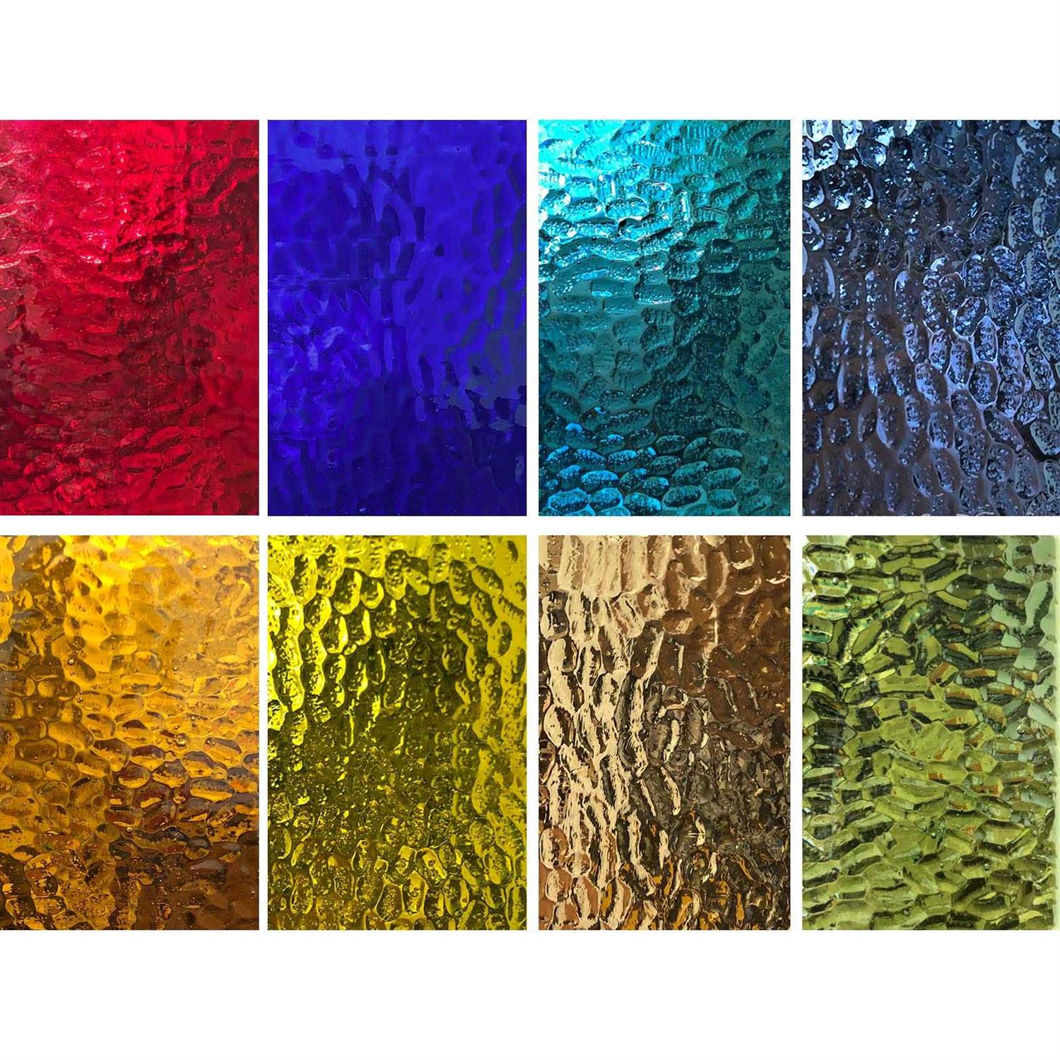 - Value Pack: 8 textured transparent stained glass sheets in various colors.