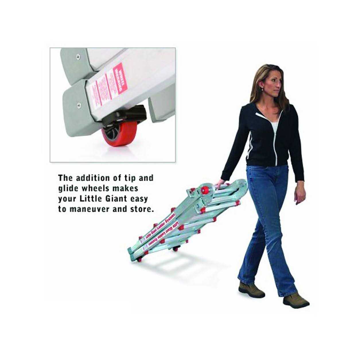 - Add a set of wheels to your Little Giant multi-position ladder with the Tip & Glide Wheel Kit.
