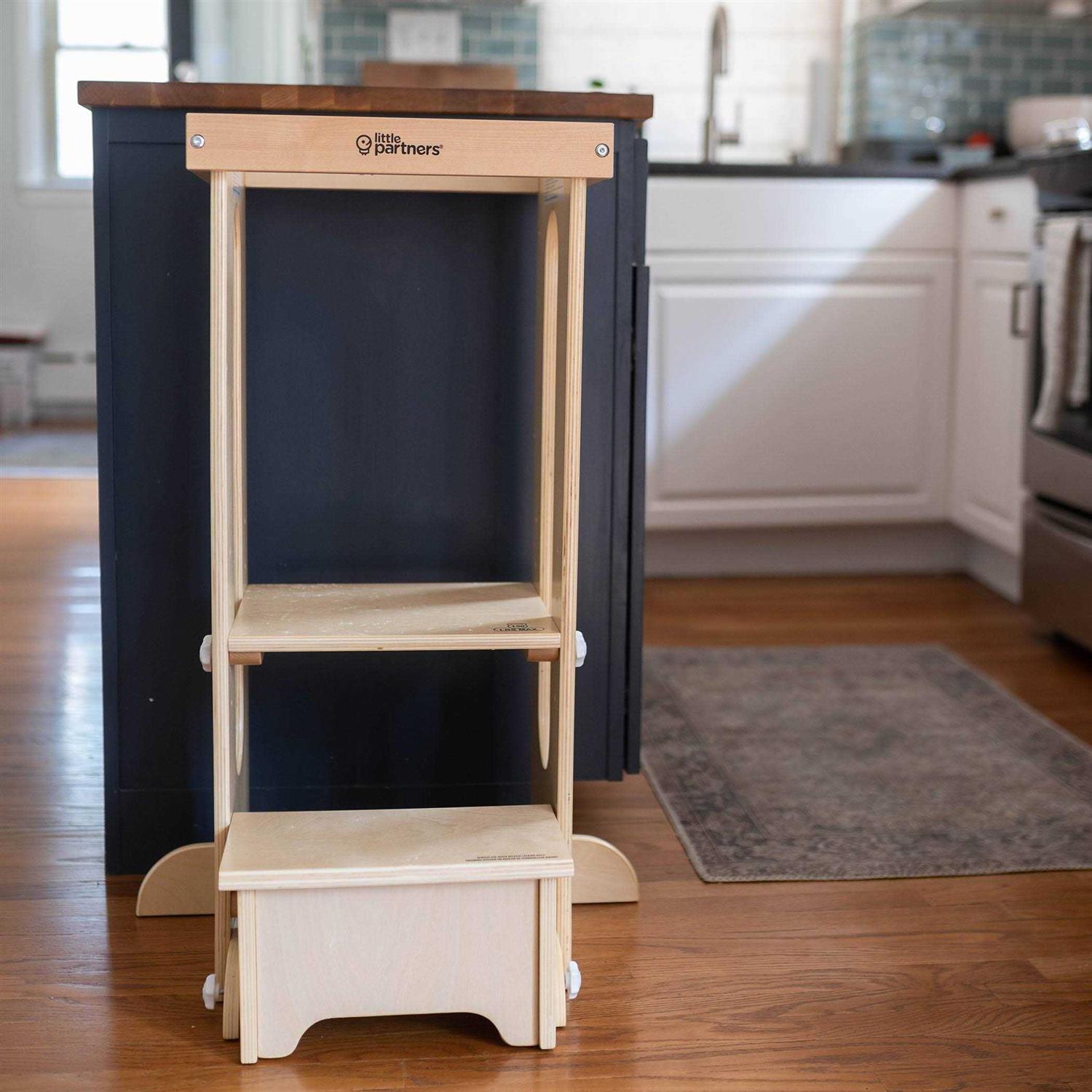 As your child begins to grow, provide them with the tools sure to grow with them. With the Little Partners Adjustable Wooden Step Stool, give your kiddo the independence they crave while keeping any dangers at bay. Invest in furniture that is designed to accommodate each member of your family. With a slim, adjustable design, you will have no trouble fitting this home essential to each of your children’s needs. No matter the task, the 4 heights and adjustment lock will be sure to grow with your toddler. Whether your little one is learning to brush their teeth or your preteen is trying to reach the top shelf, this step stool will be there to support them. Rely on the 4 sided safety railings to give your child independence while remaining safe. Designed with a solid wood frame, this kid’s step stool is made a reliable support tool. For a toddler-friendly cleanup, all you need to get this stool sparkling is a damp cloth. Elevate your toddler’s sense of independence with the Explore N Store Learning Tower from Little Partners.