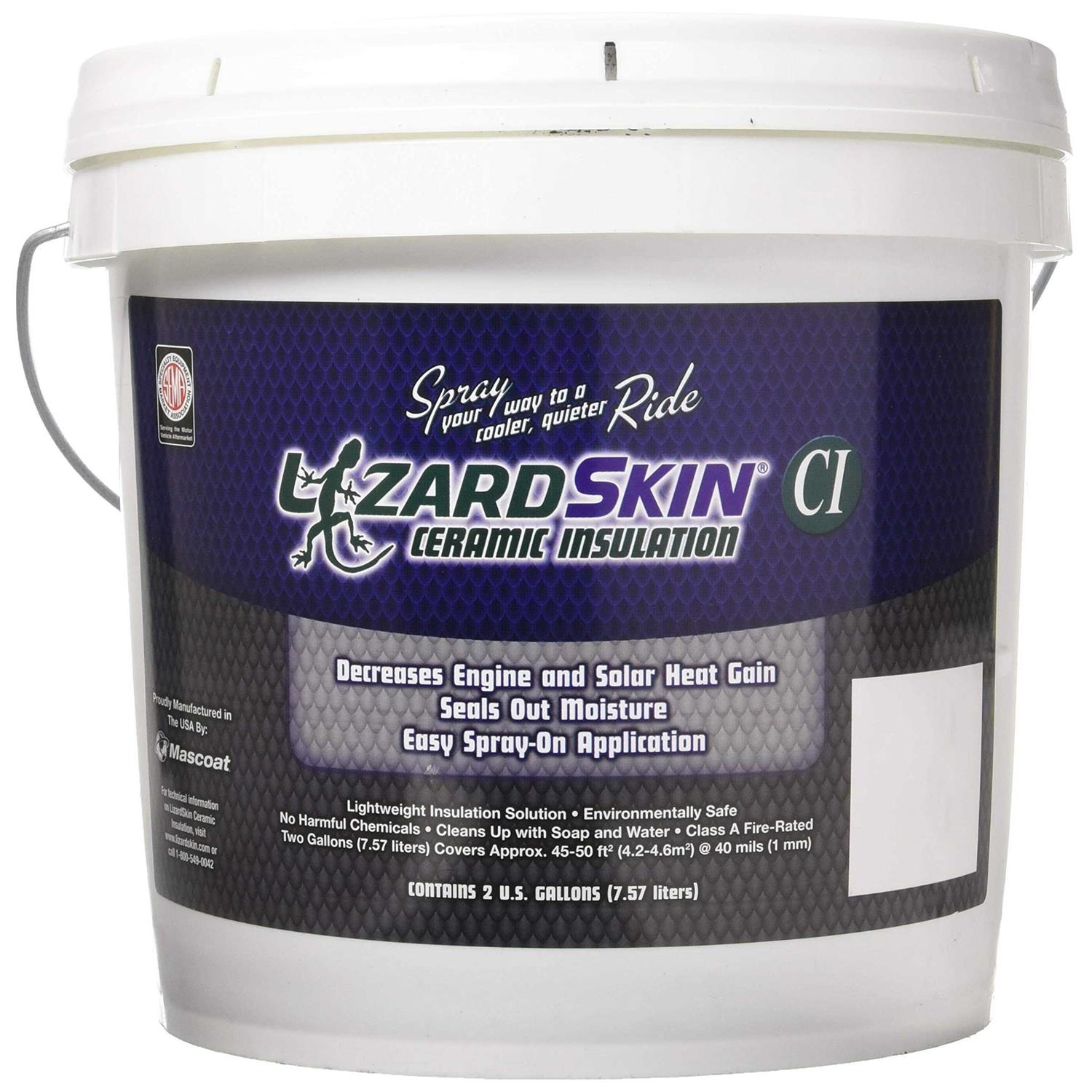 LizardSkin 50100 Thermal Insulation, LizardSkin Ceramic Insulation, Black, 2 gallons, Spray-on, Each – LizardSkin Original Ceramic Insulation is a water-based composition of high-grade acrylic binders with air filled reflective and sound absorbing ceramic particles. LizardSkin is non-toxic and Class A fire-rated. LizardSkin is an innovative easily applied coating system designed to diminish both heat and sound. Applied by spray method it forms a sealed, seamless and flexible black membrane, perfect for cars and trucks, street rods and customs, race cars, buses, refrigerated trailers, RVs, motor homes, experimental aircraft, and high end audio installations—wherever heat and noise are a problem. LizardSkin is completely water soluble, meaning easy clean-up with just soap and water. Each 2-gallon container covers 46-50 square feet with .040-.060 in. thickness.