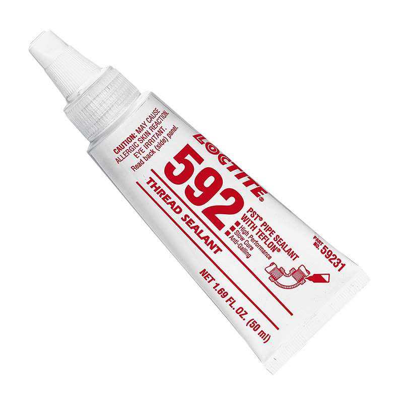 Loctite 592 Thread Sealant is a slow-cure controlled-cure medium-strength sealant formulated to resist leakage, vibration, moisture, and hydraulic acid and diesel fuels. Use with difficult-to-assemble tapered and parallel-threaded metal fittings. Parts may be repositioned up to 24 hr. after application.