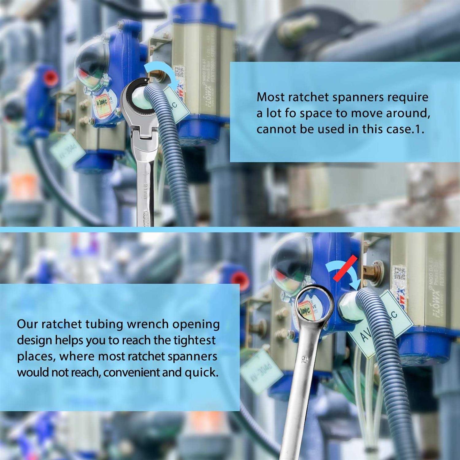 Loschen 1pc 21mm Open Flex-Head Ratcheting Wrench, Metric Ratcheting Spanner with 72 Teeth, Chrome Vanadium Steel Tubing Ratchet Spanner