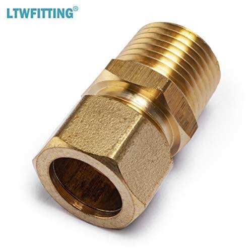 This LTWFITTING Compression tube fitting is made of brass for durable. And it connects to tubing on one end and has an NPT male connector on the other. This fitting is for a fixed connection between tubing and pipe made of copper. Easy to disassemble no flaring tool required. Primary uses water, gasoline, oil, vacuum and air lines.