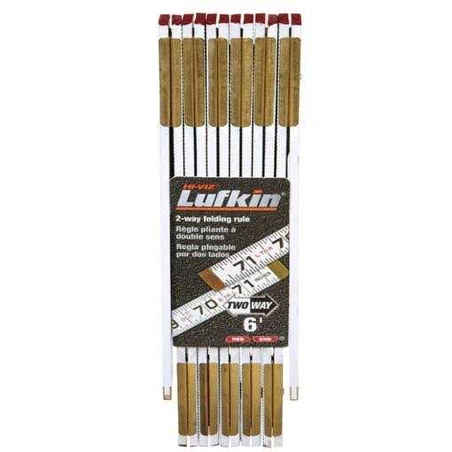 The Lufkin Red End Series of Wood Rulers is the name and color recognized as the mark of superior wood Rulers. This 6 ft. wood Ruler is made of the finest hardwood that is straight grained, tough and flexible. The Joints are made of brass; rustproof and smooth working. Markings are in red and black on a white background for easy-to-read measurements. The 2 Way Ruler has figures reading right to left on 1 side and left to right on the other side.