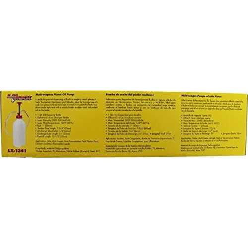 Ideal for transferring Oils, Transmission Fluid, Brake Fluid, Non-flammable and Non-Corrosive Fluids from Light to Medium Viscosity. Featuring Down-stroke mechanism and with a nozzle holder to drain back redundant Oils back into the container. 1 qt. (1 l) Capacity Bottle.