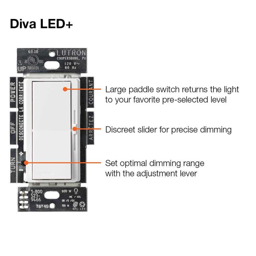 Lutron Diva Led+ Dimmer Switch for Dimmable Led, Halogen and Incandescent Bulbs, Single-Pole or 3-Way