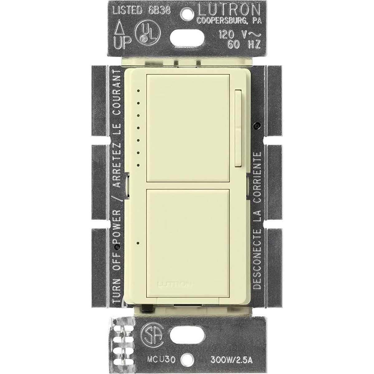 The Maestro dual dimmer and switch is a combination control that incorporates both a single-pole switch at the bottom, as well as a dimmer on top. This dual control allows you to turn 1 light source on and off with the bottom switch, while adjusting the lighting level of another source with the top dimmer. The Maestro Dual Dimmer/Switch is a great replacement for stacked switches commonly found in kitchens and bathrooms. It combines the function of 2 controls in 1, but is still packed with all of Maestro’s smart features. The easy-to-operate top tap switch turns lights on/off to your favorite light level or taps twice for full on. Press, hold and release the switch for delayed fade-to-off. Delayed fade-to-off gives you 10-60 seconds to leave the room or get into bed before the lights go out. Adjust the light level for any activity using the rocker. No neutral wire required. The dimmer works with incandescent/ halogen bulbs, while the switch works with any light bulb or general purpose fan(s). Coordinating Claro wall plate sold separately.