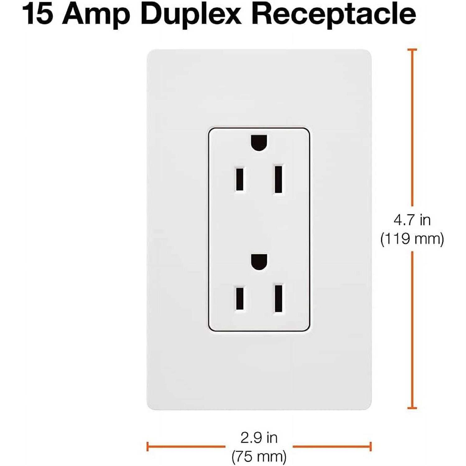 - Includes (1) 15 Amp duplex standard receptacle; coordinating wallplate sold separately