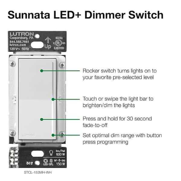 Latest design and technology provides solutions for an entire project. Updated LED+ dimmer to work with new Accessory switch for 3 and 4-way applications. PRO LED+ Dimmer provides multi-location dimming and the Sunnata switch works with non-dimming loads. Touch or swipe the light bar to set your lights. LED+ Advanced Technology provides superior dimming for dimmable LED, incandescent, and halogen bulbs. Sunnata touch dimmer works with your existing wiring—and it doesn’t require a neutral. All you need is about 15 minutes from start to finish.
