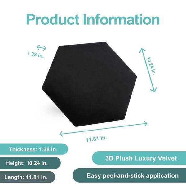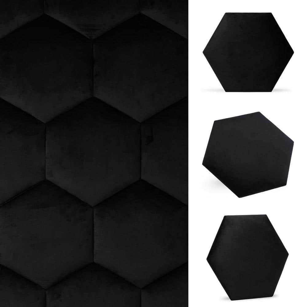 Luxury Velvet 2-Piece 3D Textile Hexagon Wall Panels, Black