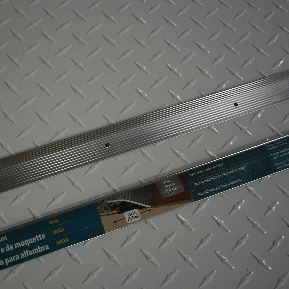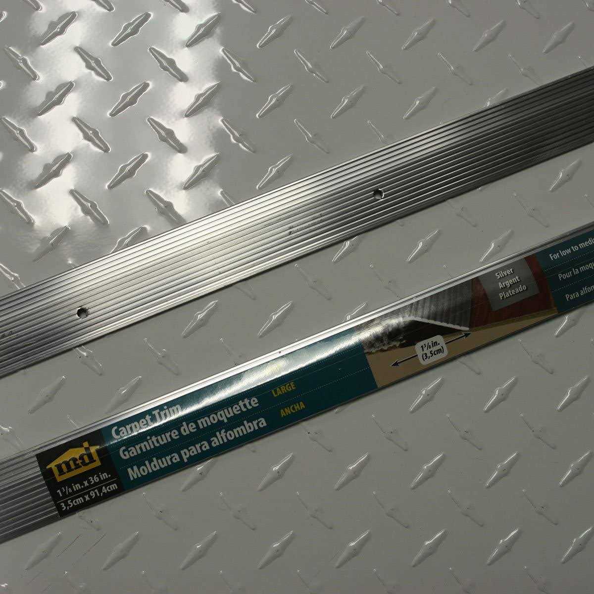 The 1-3/8-Inch x 36-Inch Fluted Silver Carpet Trim easily covers a seam or gap between two flooring surfaces of unequal height. Carpet Trim prevents carpet edges from fraying, vinyl floor seams from curling and creates a smooth transition between different flooring surfaces. Aluminum trim is easily secured to wood and concrete floors with provided Screw Nails. For installation on concrete floors use Wooden Pegs (sold separately).