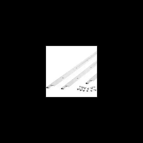 Made of aluminum and vinyl. Nail fasteners for wood frame doors, screw fasteners for wood or steel frame doors. Fasteners included. Install on doorstop. Slotted fastener holes provide easy installation and adjustment. Includes 3 pieces.