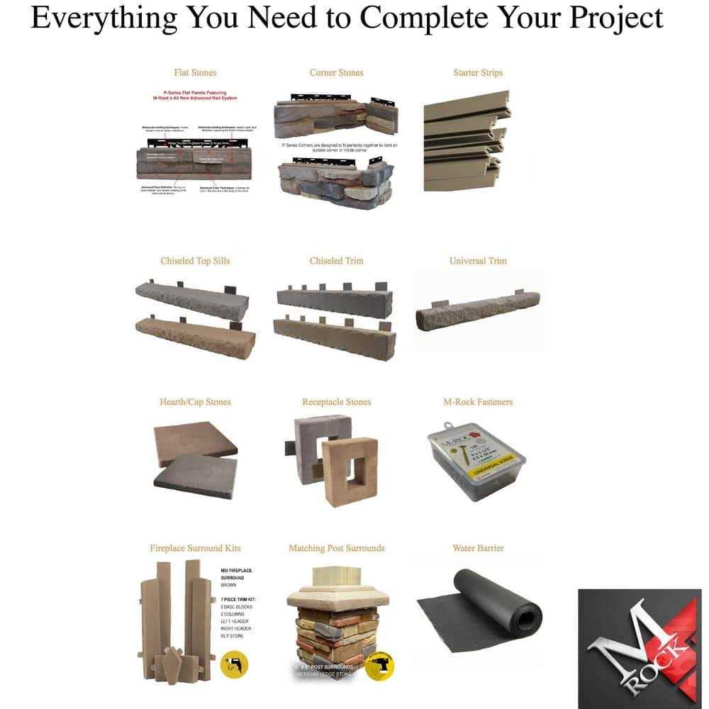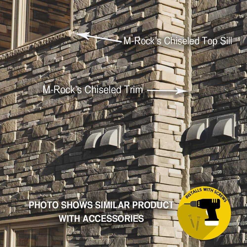 M-Rock’s patented ms p-series stones are built for beauty, durability and ease of installation. No mortar needed and simple to install – just stack and lock stones together with the built-in rail and the patented concrete locking system, then screw the panel to the wall – it’s that easy. Installs with screws into most substrates in any weather; built-in rail provides innovative and integrated air and weep system.