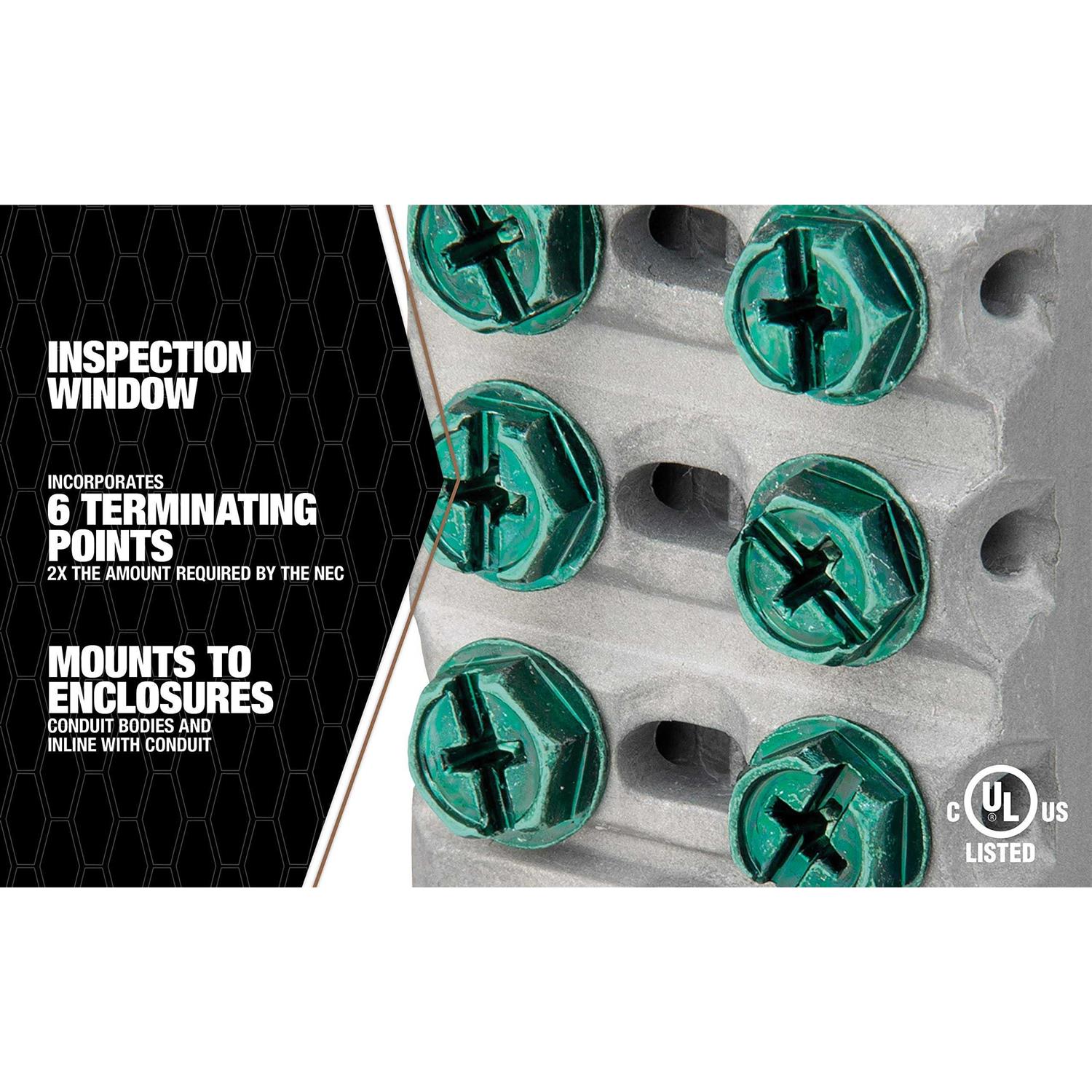 Provides a dependable method for grounding and bonding for electrical systems. When used with conduit, it provides protection against damage and theft of the main ground. Main ground conductor is isolated from communications lines. Incorporates six (6) terminating points (2x the amount required by the NEC). Eliminates creating holes in building that could allow ingress of water. Mounts to enclosures, conduit bodies, and inline with conduit.