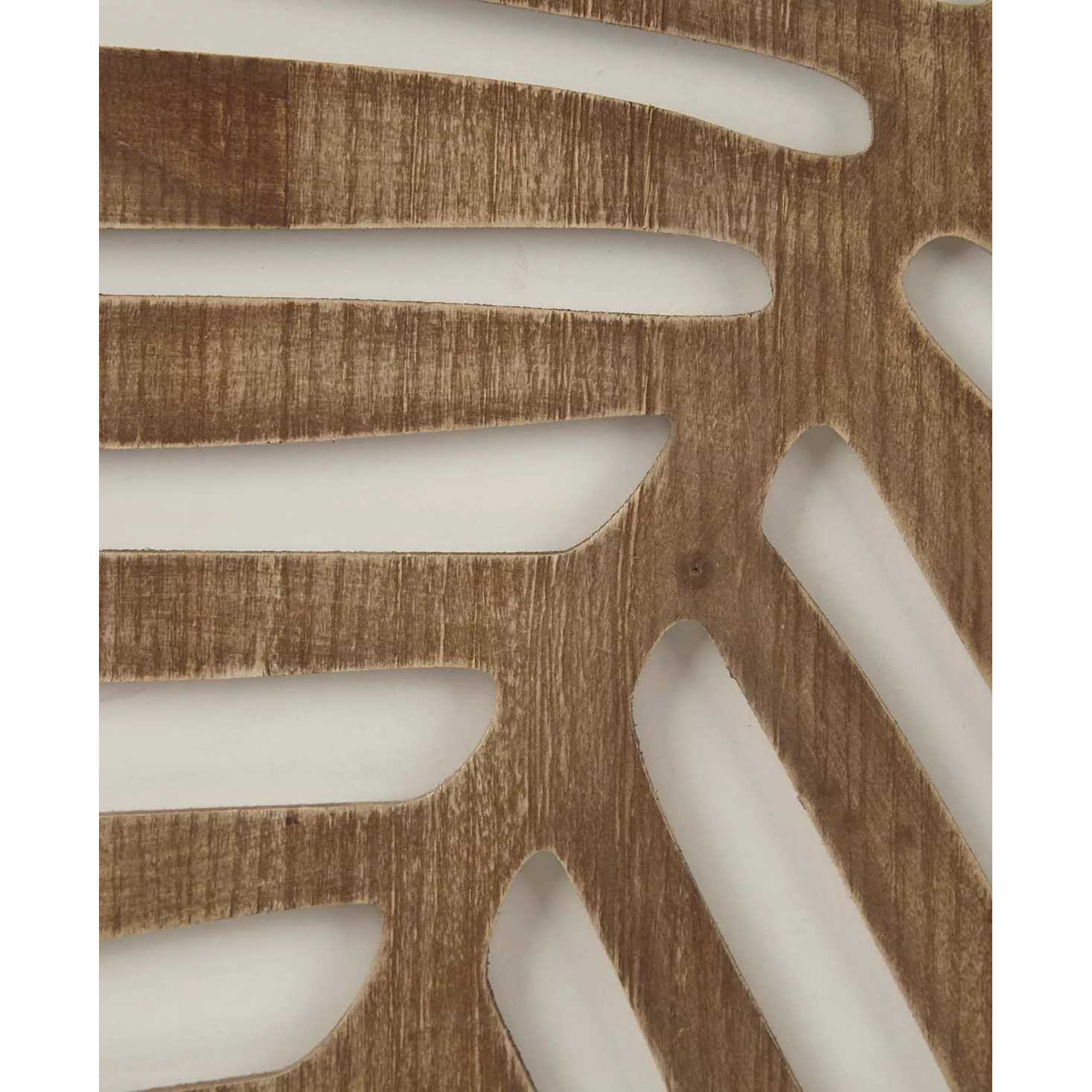 - Carved Palm pattern in a dark wood tone on a contrast white ground