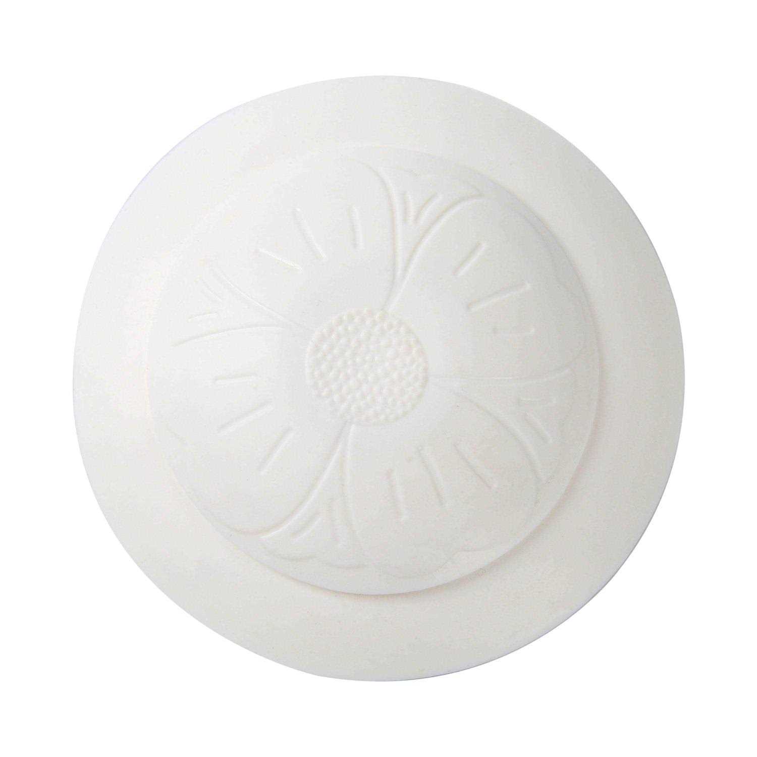 The Mainstays Large Pop-Up Drain Stopper White for 1 1/2 inch Sinks is here to ease the stress of finding a proper stopper for your bathroom sink or tub. The TPR (Thermoplastic Rubber) material is constructed to last. The white flower design is sure to compliment any bathroom. This stopper is very easy to use, simply press the center of the plug to release or stop the water without needing to remove it! Fits most 1-1/2 inch drains.