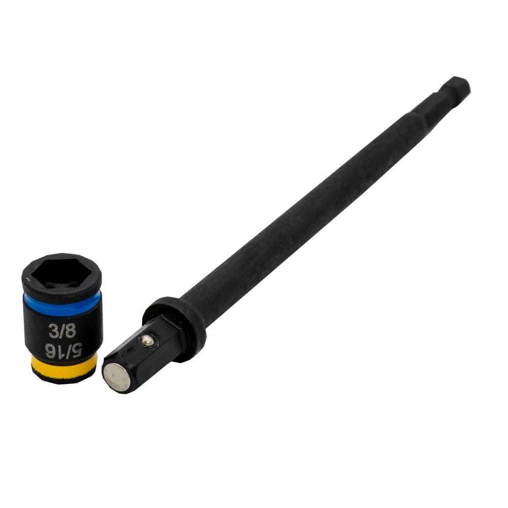 • Reversible 5/16″ and 3/8″ Hex Socket.