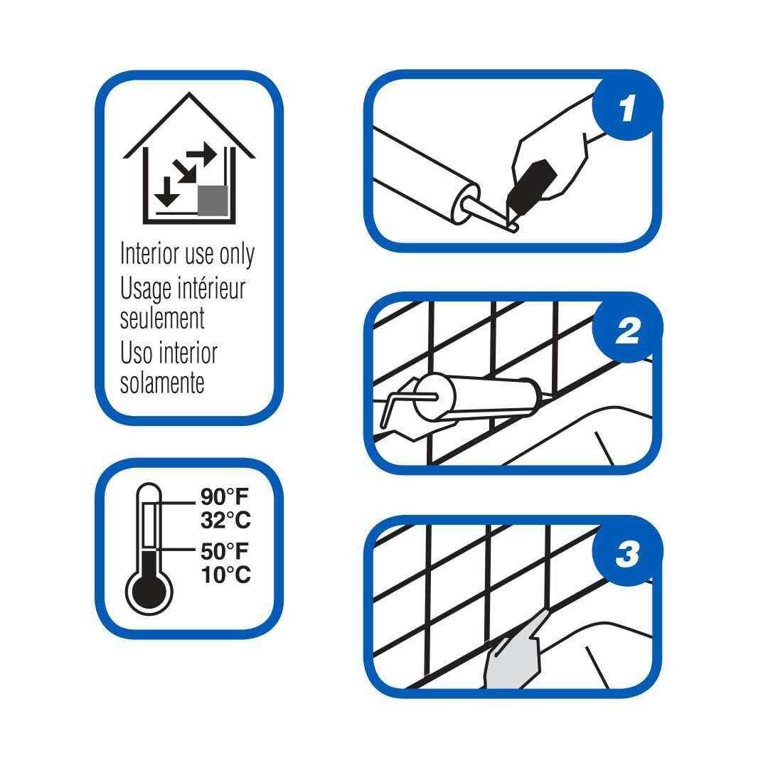 Premium sanded acrylic caulk by Mapei. This interior caulk is easy to use, easy to clean and formulated to match all of Mapei’s grout colours and textures. It is washable, paintable and mildew resistant. Ideal to fill voids up to 6 mm (1/4 ”) and redo the joints cracked or faded grout. Also serves as a sealant around sinks, tubs, showers, countertops and ceramic tiles. Let dry at least 4 to 6 hours before painting and protect from water exposure until fully cured for at least 72 hours. This sealant comes in a 311 mL gun’s cartridge for easy application and it is VOC compliant.
