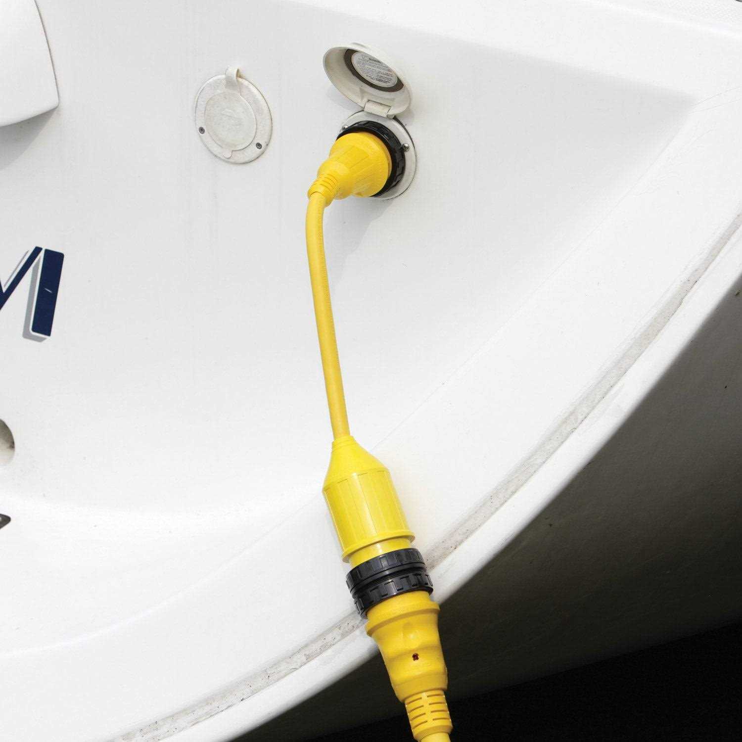 - 50A 125/250V locking dock side male plug to 30A 125V locking w/ sealing collar system boat side female connector