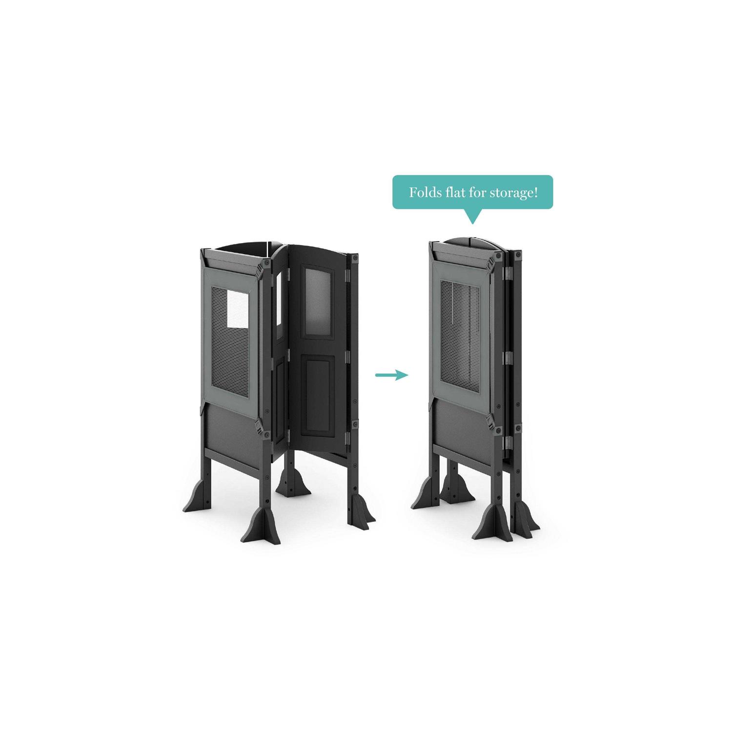 Promote independence, safety and togetherness with the Martha Stewart Kitchen Helper. Securely elevate toddlers and young children to counter height, allowing them to safely join in on moments of family togetherness in the kitchen. Encourage independence and confidence as children take on small tasks and learn while doing. Inset windows, a classic design and contemporary color options allow the Martha Stewart Kitchen Helper to seamlessly integrate into any kitchen. This lightweight, foldable stool is constructed from a durable, easy-to-clean combination of beech solids and birch plywood. Includes mesh Kitchen Helper Keepers for both open sides and a non-slip mat for extra security. Arrives almost completely assembled; simply attach the four stabilizing feet. For ages 2 and up. Measures 23″L x 23″W x 36″H.