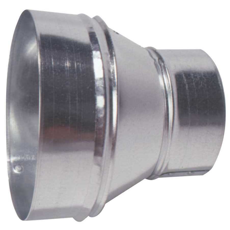 Round Reducer is made of galvanized steel. It features hemmed collar edges for enhanced strength and a secure fit. The reducer is used to transition from a 8 in. pipe to a 6 in. pipe in an HVAC system. It is suitable for most HVAC applications.