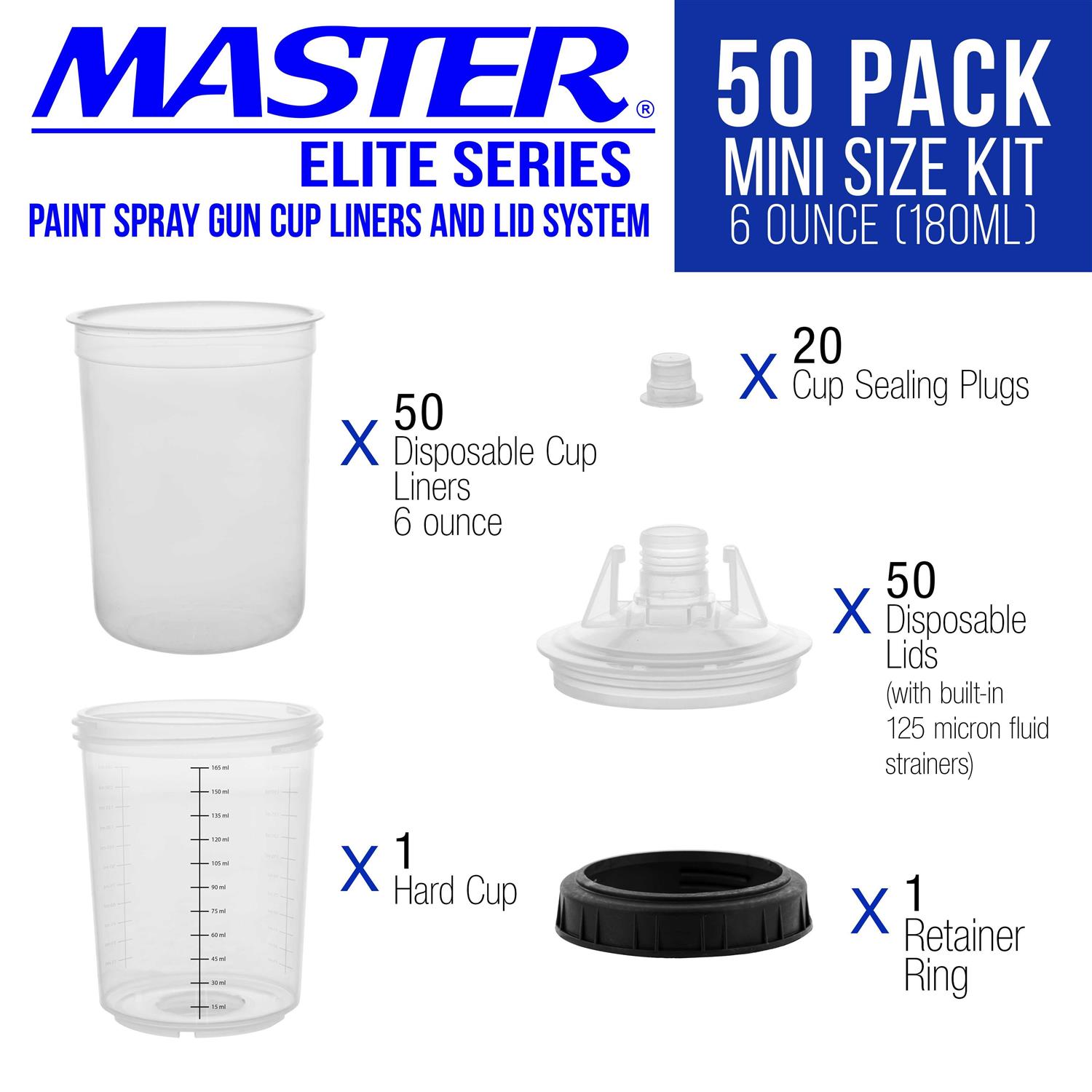Master Paint System MPS Disposable Paint Spray Gun Cup Liners and Lid System, 50 Pack Mini Size 6 Ounce (180ml) Kit by TCPGLOBAL